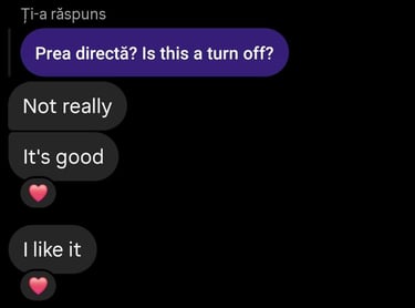 Pentru bărbați, în schimb, lucrurile par să fie simple și deloc nuanțate. Am purtat această discuție, pe Instagram, cu trei bărbați. La întrebarea „Este un turn-off pentru tine faptul că sunt mai directă?”, toți au răspuns că ei consideră ca fiind „sexi” și atractivă o femeie care „este sigură pe ea și știe ce își dorește”.